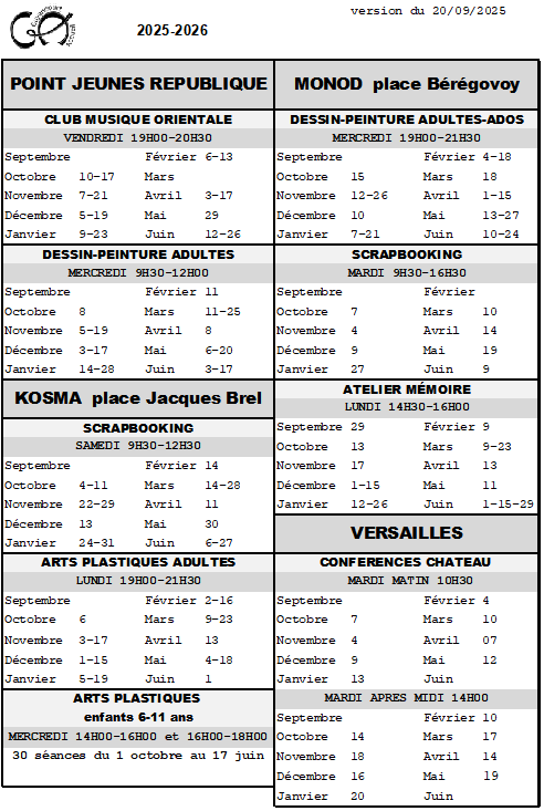 Pour les activités manuelles, l'atelier mémoire, le club musique orientale et les conférences au château de Versailles